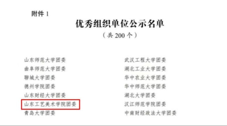 始终坚持“为人民而设计”的价值追求,注重引领山工艺学子以我所学服务社会,用我所学服务人民,积极引导团员青年开展各类社会服务活动,在服务社会中全面成长成才,彰显山工艺学子青春奋斗风采。团委相关工作收到团中央、团省委、团市委、济南市文旅局等单位表扬信(感谢信)6封。学校老师指导学生创作的短片《青春建功》入选“团团就业引航加油站”优秀作品,收到团中央表扬信,是山东省唯一受到表扬的高校。学校相关师生作品选为团省委“070勇敢者行动”品牌logo,在全省范围推广使用。学校团委对“毕业 当燃在济南”2023届济南大学生毕业典礼工作鼎力支持,选送节目、设计《毕业当燃在济南》人才政策宣传册等。承办“立德树人文艺汇演暨山东省第七届大学生艺术展演”相关工作,为美育培根铸魂工作贡献力量。山工艺学子的身影在社会中频频亮相,青春奋斗的努力饱受赞扬,唱好了山工艺好声音。