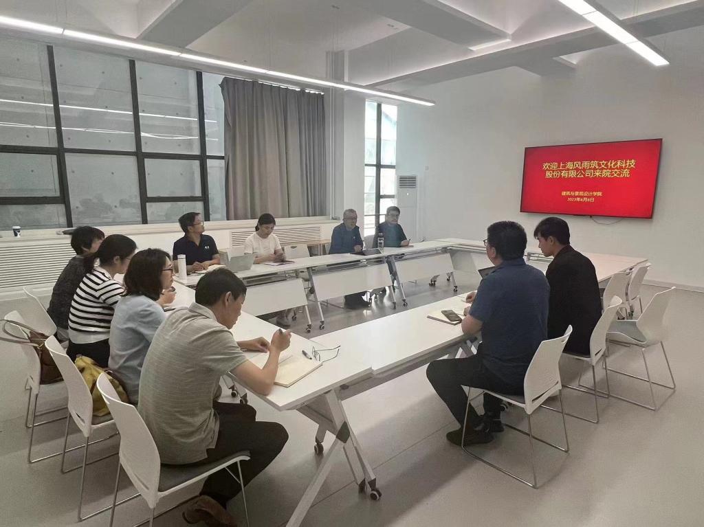 建筑与景观设计学院院长李文华对学院专业发展、课程建设、人才培养等方面进行了介绍。他表示,上海风语筑文化科技股份有限公司与学院的专业设置契合度较高,希望以此次走访为契机,期待双方在人才培养、科学研究、就业实践等方面开展可持续、深层次的合作。