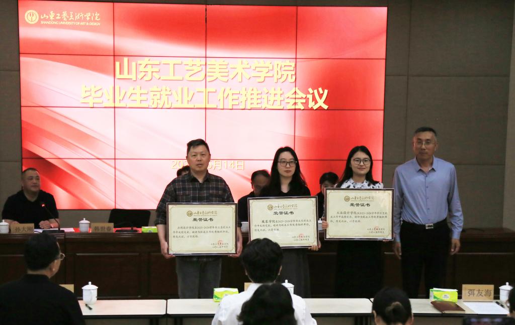 董占军宣读了《关于表彰2023-2024学年毕业生就业工作先进集体和先进个人的决定》,学校领导为就业工作先进集体和先进个人代表颁发了奖状和荣誉证书。