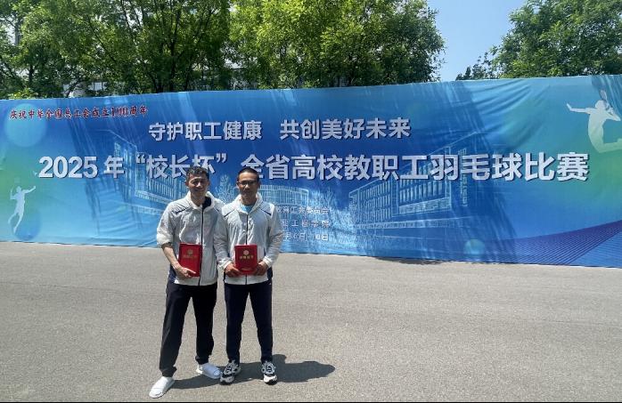 304am永利集团官网教职工羽毛球队在学校党委副书记韩世春的带领下,满怀热情,团结一致,经过四天激烈角逐,学校荣获混合团体比赛三等奖、优秀组织奖的优异成绩,工业设计学院王世伟和公共课教学部陈强获男子双打(40岁以上)亚军,比赛成绩创历届新高。