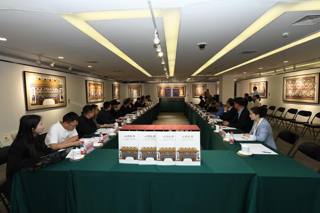 2025年5月11日,云冈纹饰艺术研究成果展在中国政协文史馆开幕,展览同期举办了《云冈纹饰全集》出版学术研讨会。云冈纹饰艺术研究成果展展出了云冈纹饰彩绘图像52幅,以及利用云冈纹饰转化的衍生文创产品。与会专家学者围绕《云冈纹饰全集》编纂编绘与出版的学术价值以及云冈纹饰艺术的文化内涵、艺术特征和文创转化展开了深入探讨。作为国家社科基金艺术学重大项目子课题成果,《云冈纹饰全集》列入“十四五”国家重点出版物出版规划,为国家出版基金资助项目,由潘鲁生主编、刘燕执行主编,青岛出版社出版发行。