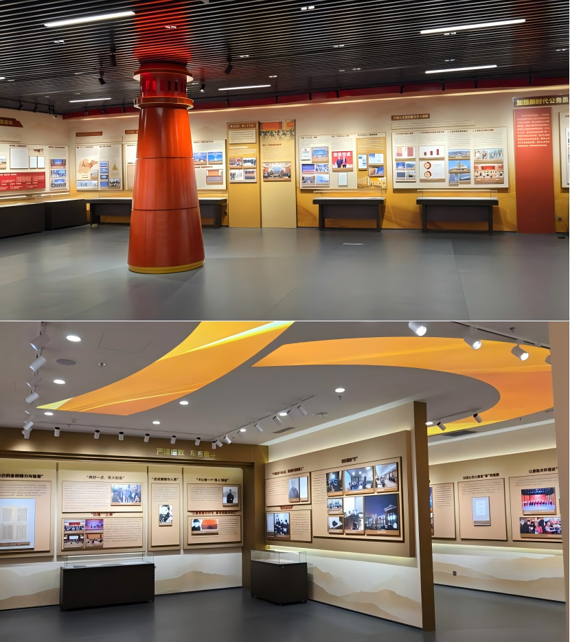 展馆室内总面积约1294㎡,其中展厅面积约1077㎡,设置序厅、部史、部风、尾厅4部分,序厅包括前言、省委组织部机构沿革等内容;部史按照党的4个历史阶段布局,其中“中国特色社会主义新时代”为展陈重点;部风包括党和国家领导人对组织工作的重要论述、体现优良部风的典型事例等内容;尾厅包括山东组织系统负责人、入党宣誓区、结语等内容。