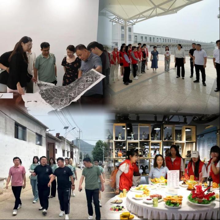 依托“实践育人基地”资源,搭建校地合作桥梁,助力地方实现文旅融合、乡村振兴等目标,为区域经济发展注入强劲动力。携手东营文旅、利津县委、槐荫区五里沟街道、莱芜区娘娘庙村,合力打造非遗调研、文创开发、墙绘赋能、街区保护等创新项目,实现资源优化配置与高效利用。校党委高度重视社会实践工作,深入一线探望并指导调研,各二级学院党委积极响应,亲自带队全面融入实践活动,构建多层次协同联动工作体系。团委智“汇”非遗团队秉持“文化赋能,助力乡村”理念,编撰“原汁原味”非遗故事,探索活态化传承新路径,使非遗“符号”焕发新生。视觉传达设计学院师生深入娘娘庙村,以花椒、小米、山楂等特色农产品为重点,设计包装方案,提升农产品品牌形象与市场竞争力。现代手工艺术学院为东平黄河河务局创作绘制50幅黄河防汛知识壁画,增强当地居民防灾减灾意识。建筑与景观设计学院充分发挥建筑学专业优势,通过绘制建筑手稿和设计规划,致力于商埠文化传承复兴,展现城市新风貌。