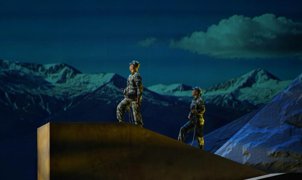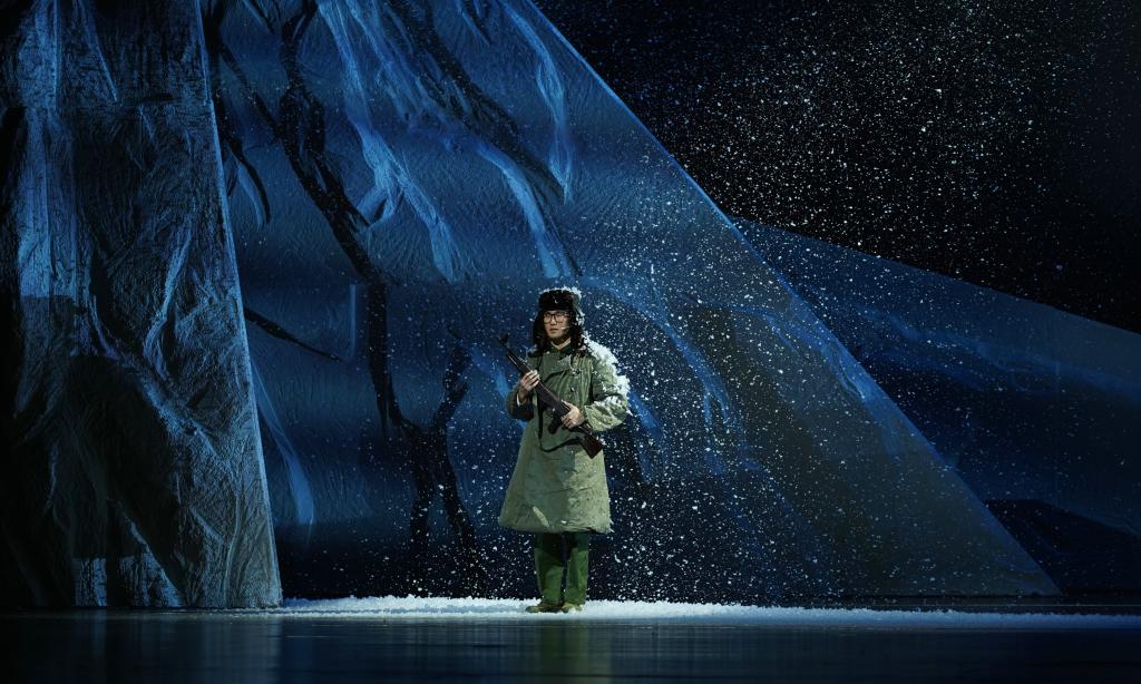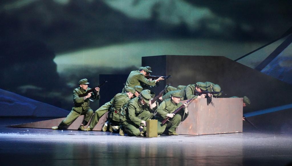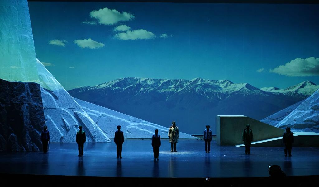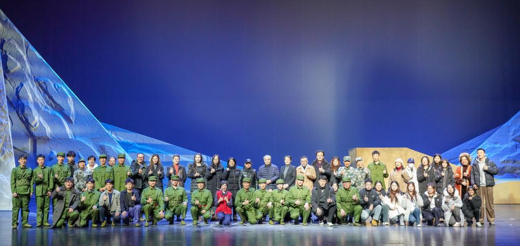《中国界碑》主人公原型为“七一勋章”获得者、“感动中国”人物、全国道德模范、全国模范退役军人、“最美奋斗者”、新疆生产建设兵团第九师161团第一代护边员、山东省临沂籍老兵、84岁的魏德友老人。剧目讲述了两位兵团老兵自1964年起扎根中国和哈萨克斯坦边境最前线,把家安在两道边防铁丝网之间,在周围50公里荒无人烟的萨尔布拉克草原坚定驻守60年,巡边总里程20万公里的生命历程。该剧由永利官网“青创团队”负责人、产教融合青岛基地电影产业学院教师孙丽萍担任编剧,青岛基地教师邵鹏、刘柳分别担任导演和舞美设计,工业设计学院教师杜春晓担任灯光设计,团队校外成员赵晓凯担任音效设计。团队成员于2023年4月赴新疆中哈边境对主人公原型魏德友进行了深入采访,2024年5月完成剧本创作,12月完成舞台创作。剧目参演演员30人,演出时长140 分钟。
