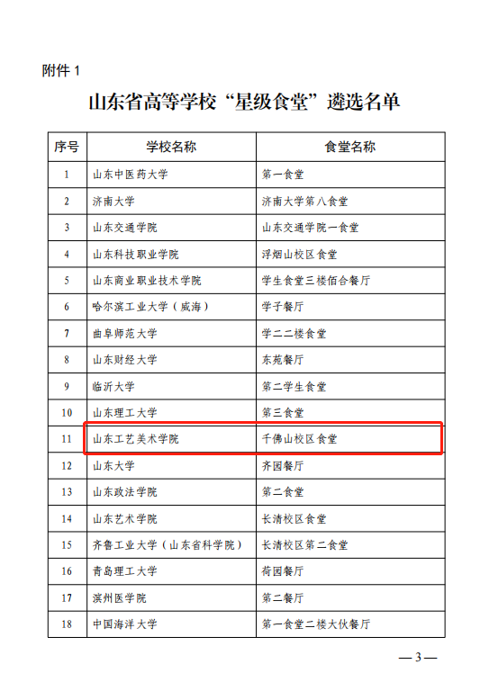 近日,山东省教育厅发布《关于公布2022年度学校“星级食堂”名单的通知》(鲁教发展函〔2023〕6号),永利官网千佛山校区一食堂荣获“山东省学校星级食堂”称号,此次共有30所省内高校食堂获此殊荣。