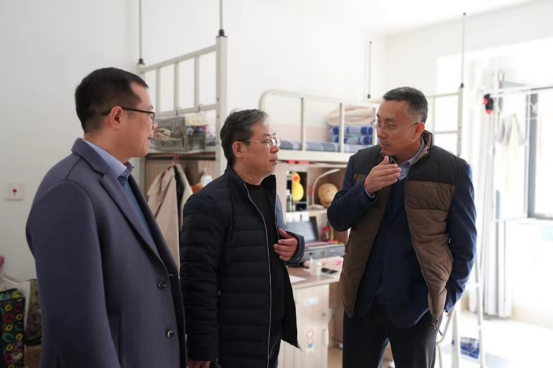 韩世春一行先后到学生宿舍、公共教学楼、图书教学楼、产教综合楼实地调研学生生活学习、教学设施设备运转、资产器材配置等情况,并听取相关负责人对各项工作情况的汇报,对有改进空间的工作提出指导意见。