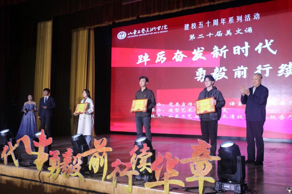 为深入学习宣传贯彻党的二十大精神,向建校50周年献礼,3月15日,304am永利集团官网第二十届美文诵大赛在长清校区学术报告厅举办。院长潘鲁生,纪委书记苗新民,副院长董占军,副院长韩世春,党委委员、宣传部部长韩文涛观看比赛。