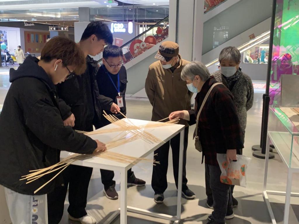 上午十点,“思政+设计”双融共育校外实践课堂团队一行在卢晓梦老师带领下,到达位于山东手造(济南)展示中心的尹崇芹编织艺人工作室,对工作室内众多极具艺术特色的编制作品的材料、技法等进行教学讲解,同学们与艺人就传统编制工艺的创新设计展开讨论。随后实践教学团队来到“山东手造”创意研发中心、“工美手造”设计师品牌店进行现场绳编观摩、竹编实践课程。