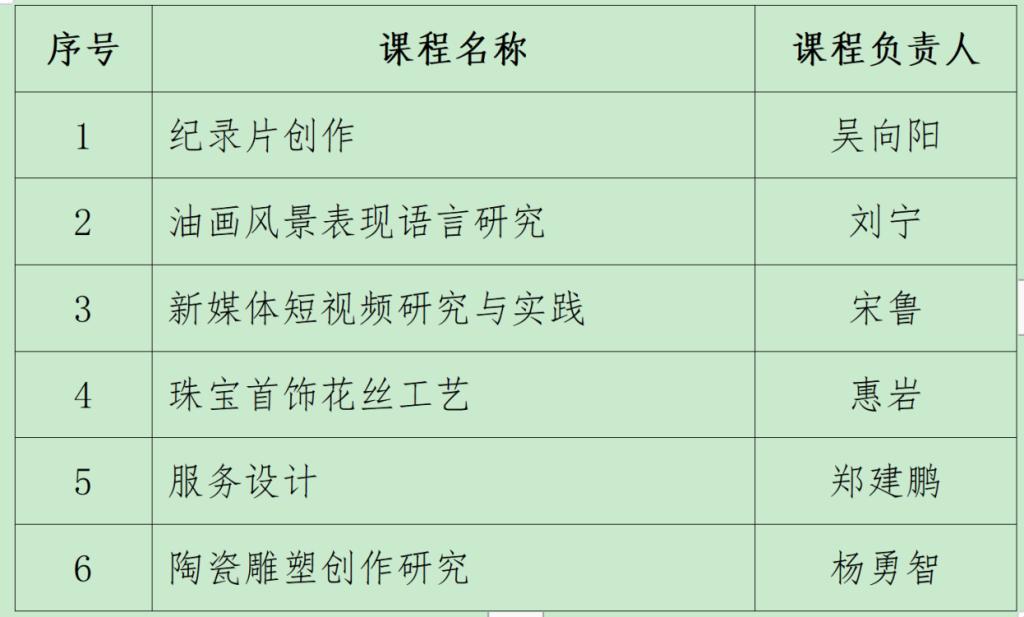 近日,全国艺术专业学位研究生教育指导委员会下发《关于艺术硕士专业学位研究生在线示范课程建设工作现阶段进展情况的通告》(艺教指委[2023]1 号),永利官网推荐的六门研究生课程全部入选全国艺术硕士专业学位研究生在线示范课程。