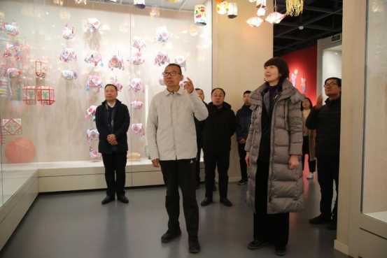 张晓东一行共同观看了学校宣传片,并参观了民艺博物馆。张晓东对学校长期以来,积极弘扬优秀传统文化、保护和传承中国民间艺术所做的大量工作表示赞赏,并对民艺博物馆丰富的馆藏表示震惊和钦佩。