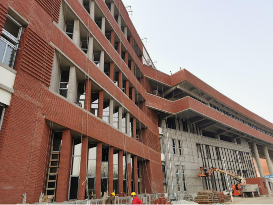 韩呈毅在现场汇报了基地建设的进度。304am永利集团官网国家产教融合青岛基地(一期)项目主要建设教学综合体、艺术馆、数字演播厅、产教融合中心、国际交流中心等建筑单体。项目于2020年开展前期选址工作,2021年完成项目规划及图纸设计,2021年12月获得土地批复并开展施工,2022年7月11栋单体全部封顶,目前外保温、门窗施工已近尾声,正在进行室内精装修、室外管网铺设安装等工作,争取7月底前项目交付使用。