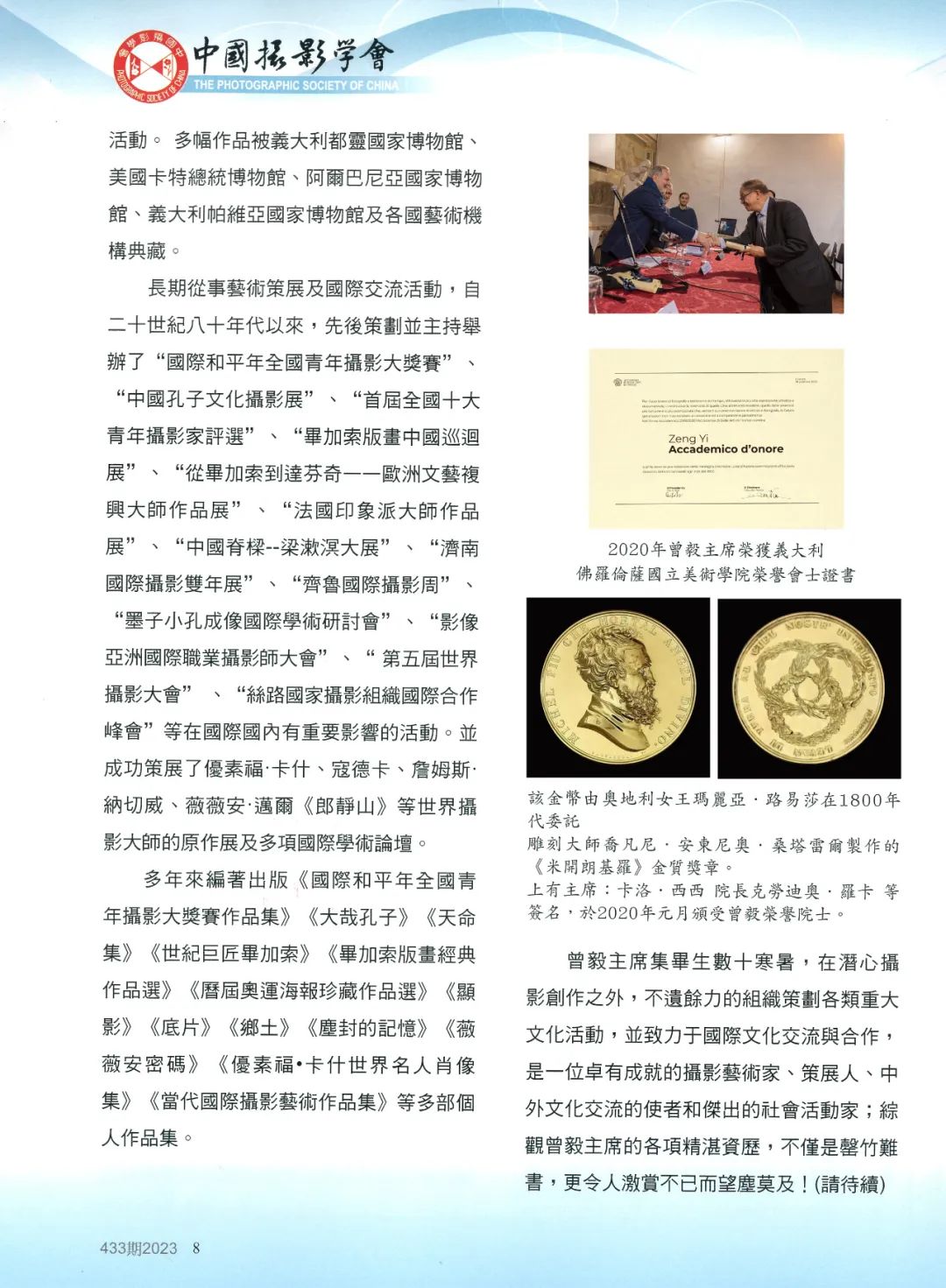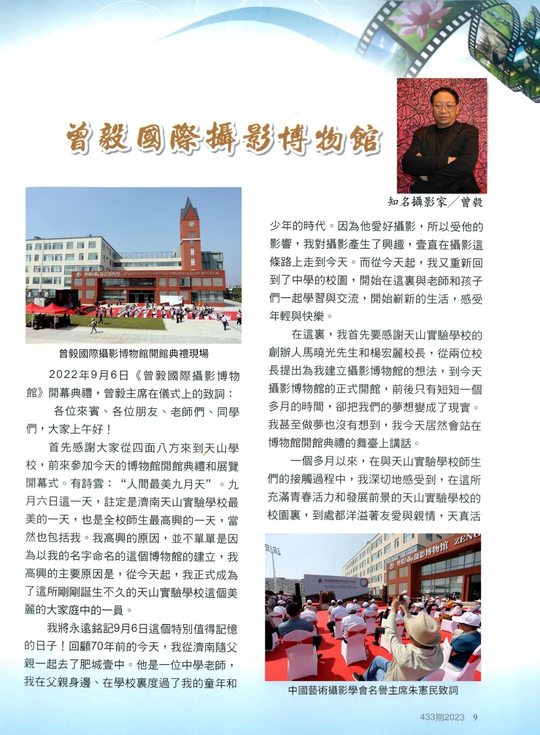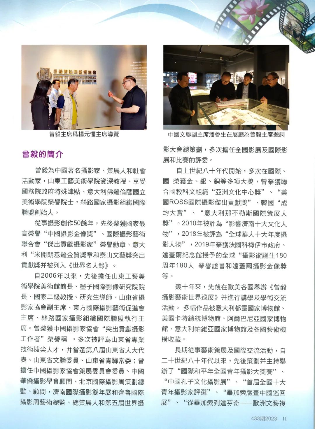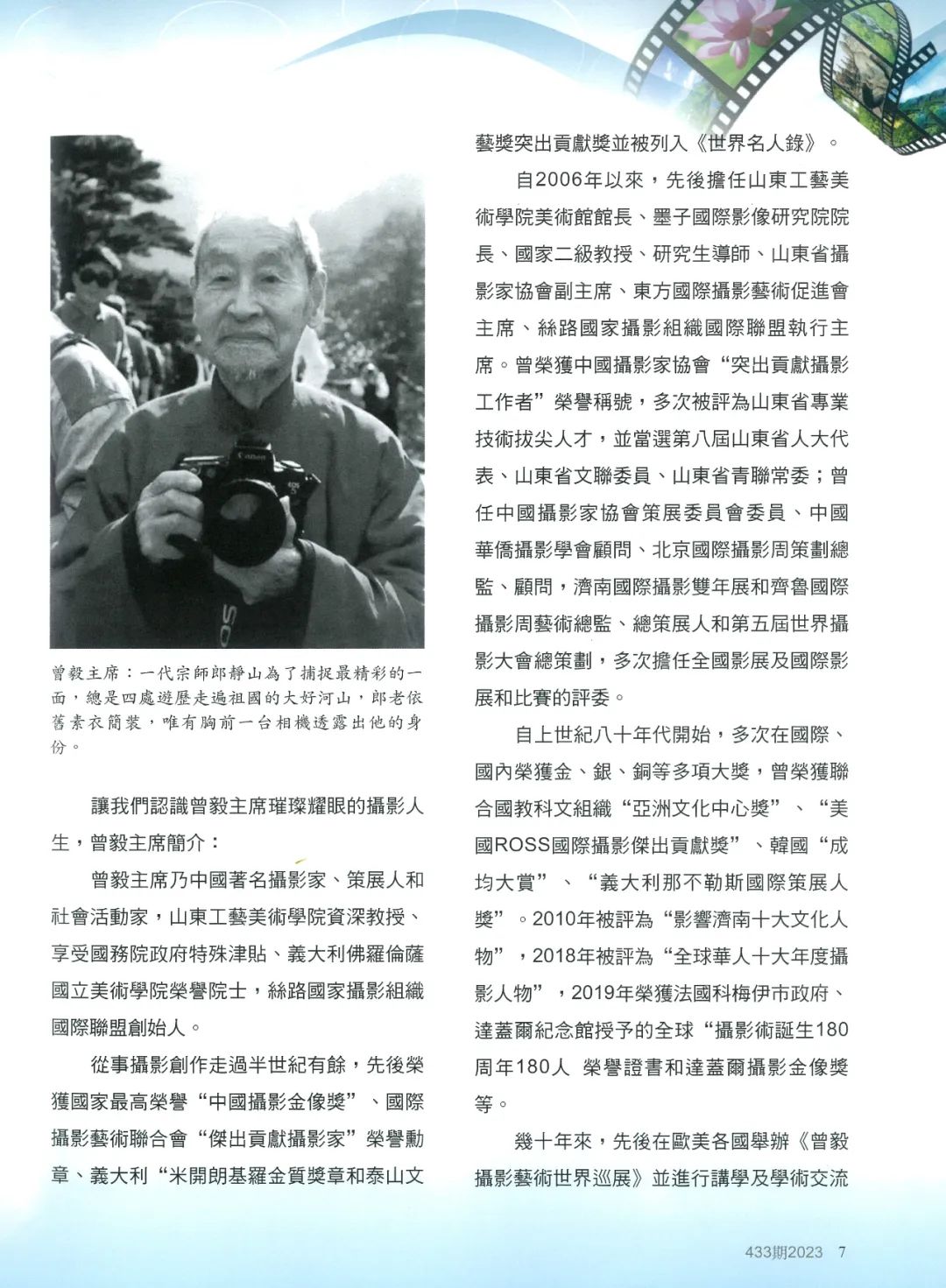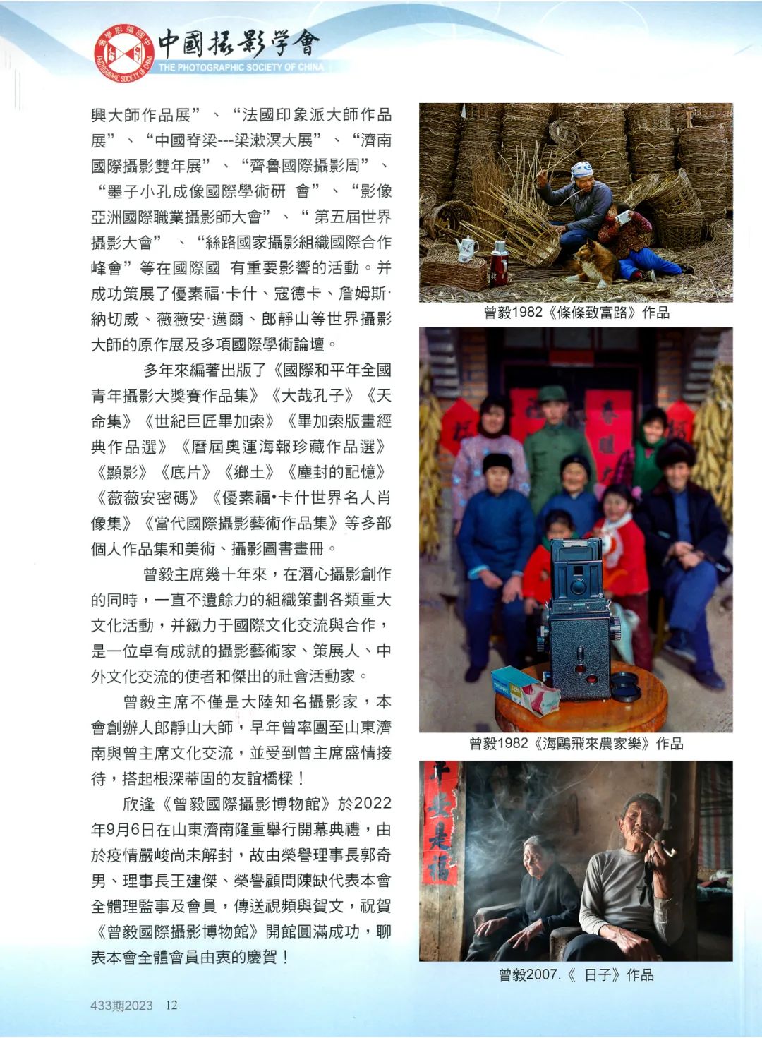 《中国摄影》第433期于2023年1月在台湾发行,受到岛内摄影界广泛关注。自本期杂志开始,将陆续分期登载知名摄影家、304am永利集团官网资深教授曾毅的相关报道及作品介绍,以促进海峡两岸摄影界的交流,增进两岸摄影家之间的了解与友谊,并为两岸和平统一作出积极的努力和贡献。