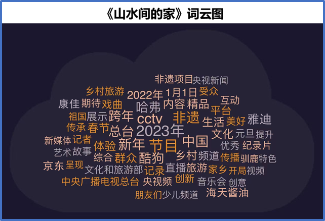 在此基础上,多家头部新媒体也加入宣传梯队,并对节目的创意创新给出了高度评价,如“广电独家”就指出节目“用电视大屏打造出了小屏融合的‘直播感’”,肯定了节目形式上的创新思路;“CMG观察”将《山水间的家》比作“一次在‘乡村振兴’大主题下所展开的田野调查”,“在活泼灵动、治愈人心的气质之下,更多了一份实地了解、切身体验、思考总结的调查研究精神”。