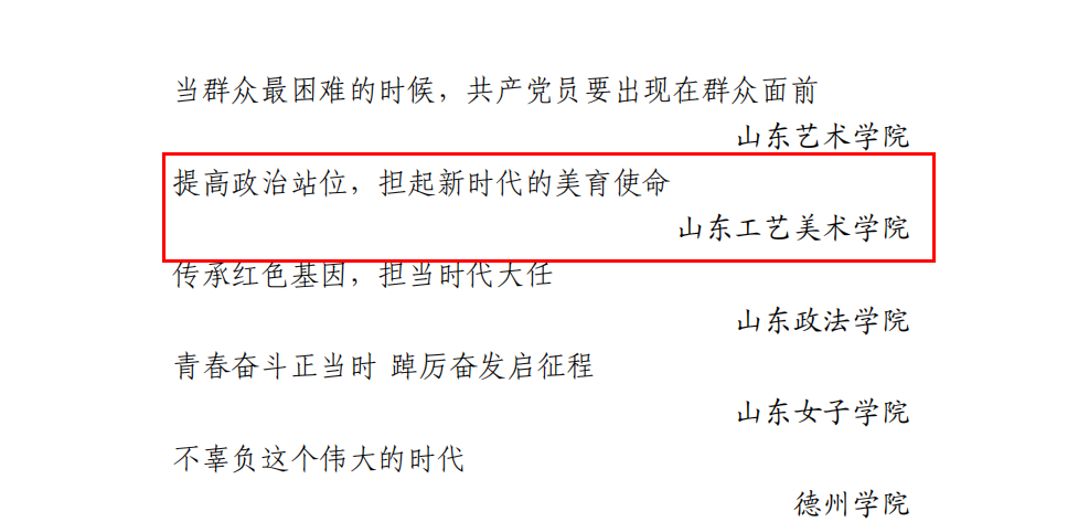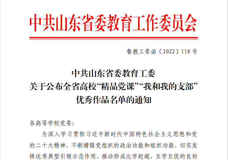 近日,中共山东省委教育工委公布了全省高校“精品党课”和“我和我的支部”活动获奖名单,永利官网原数字艺术与传媒党总支学生第二党支部书记郑静同志主讲的党课《提高政治站位,担起新时代的美育使命》获得全省三等奖。