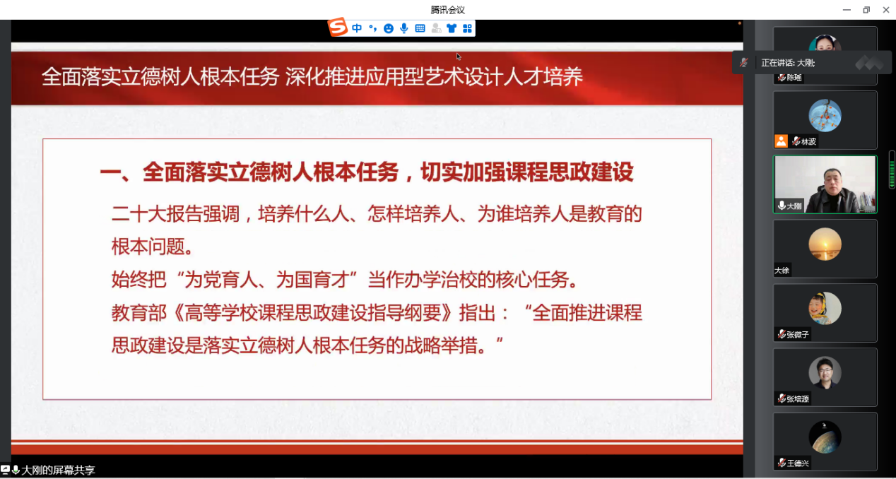本次宣讲由视觉传达设计学院党总支书记林波主持,视觉传达设计学院、创新创业学院党政领导、全体教职员工以线上形式参加会议。