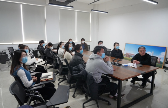 会议采用线上和线下结合的方式进行,产教融合青岛基地全体教职工和学生代表参加会议。