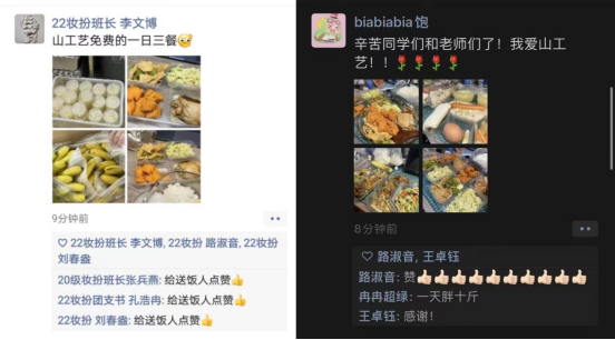 疫情无情人有情、凝聚力量向前行。在临时管控状态下,老师和同学们用不同方式共同筑起校园疫情防控的铜墙铁壁,用自己的“微力量”守护我们的校园、我们共同的家。一句句振奋人心的鼓励,一句句暖心的感谢,汇聚成一股股暖流,把众志成城、共克时艰的信心传递给每个人!