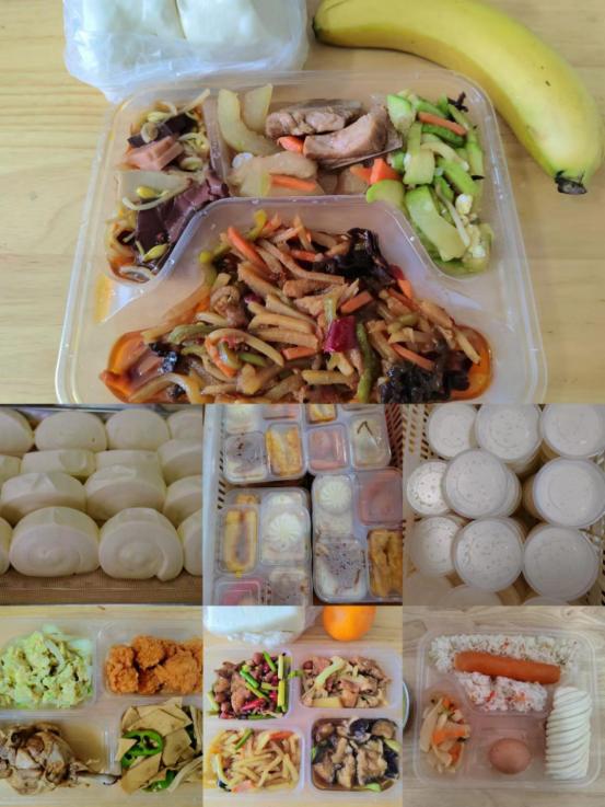 适逢青岛大风降温天气,寒冷的气候并没有减退老师和志愿者们的热情,他们总是在第一时间到餐厅取餐,分批运送到宿舍楼后,迅速分工、分发饭菜,等全部工作结束后,他们才能吃上一口饭。对于少数民族同学的就餐问题,进行单独沟通、单独制作、单独派发,保证每一位同学都能吃到可口的饭菜。