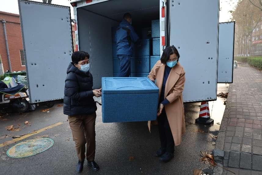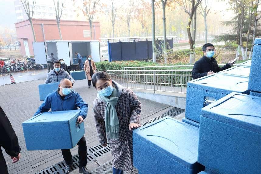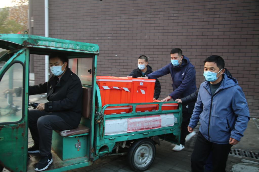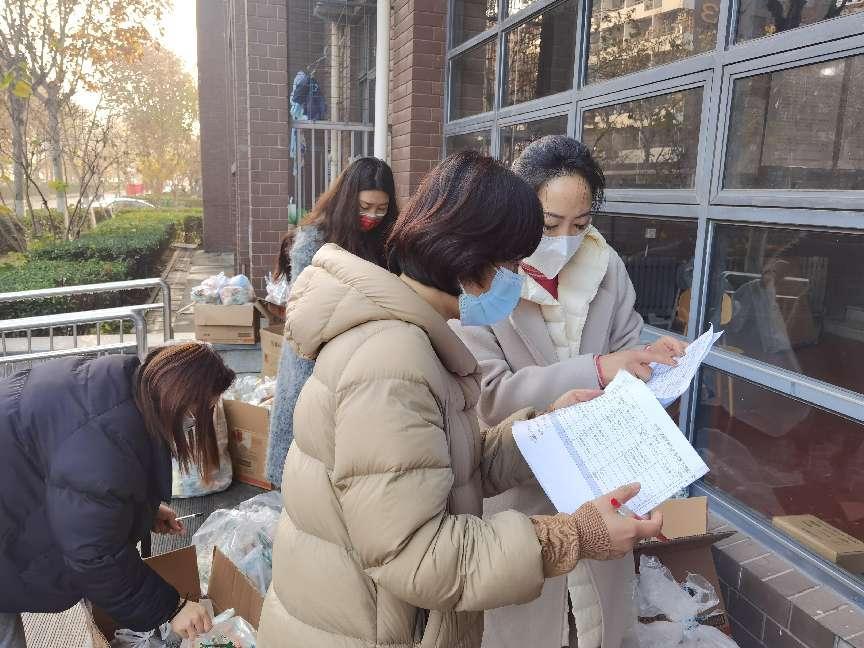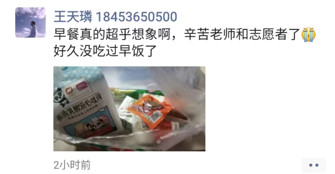 当朝霞开启崭新的一天,清晨6:30,教工志愿者们早早按照分组分工、到岗到位,开始为早餐运送分发做着准备。