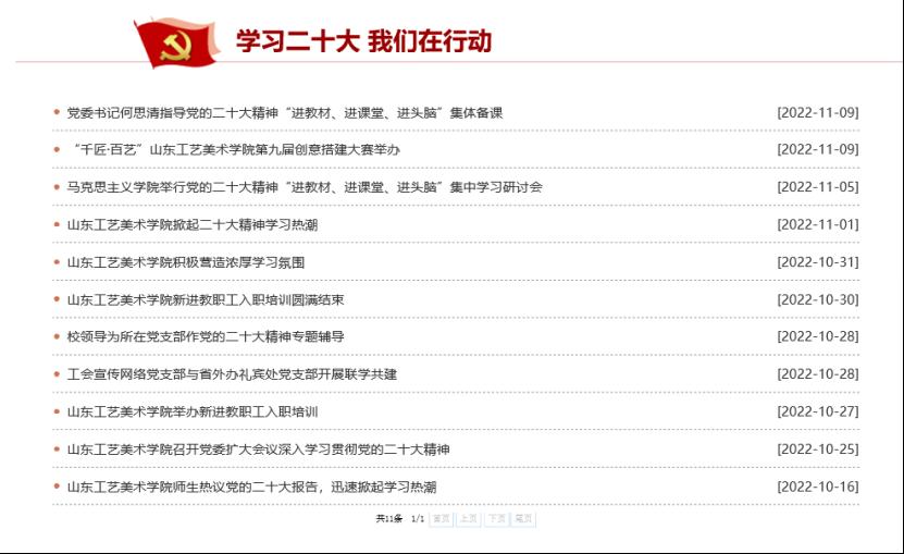 专题网站开设“学习宣传贯彻党的二十大精神”“学习二十大 我们在行动”“党的二十大 学习进行时”“欢庆二十大 勇担新使命”四个栏目,全面宣传报道学校各级党组织、各部门单位学习宣传贯彻党的二十大精神情况,集中展示学习宣传贯彻党的二十大精神的特色做法与靓丽风采,及时发布相关学习宣传贯彻相关活动,刊登权威媒体报道和校内外专家学习文章,着力打造全校师生学习宣传贯彻党的二十大精神的“发布厅”和“加油站”。