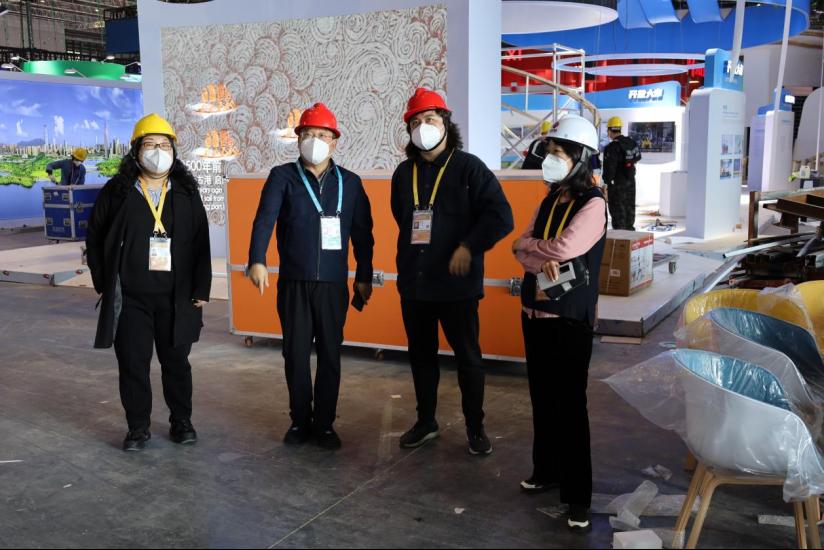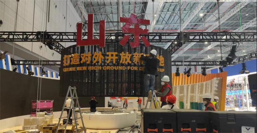 自10月下旬,304am永利集团官网工作专班成员克服疫情阻力,按照任务分工相继抵达上海。11月的深秋,国家会展中心灯火通明,工作专班发扬团队精神、坚守岗位、精益求精,工作中他们明确任务、落实分工、把握节点、科学统筹,以实际行动全力推进各项布展工作。从策划、设计到布展、搭建近40天的历程,工作专班夜以继日的突破各项设计难点、工程难题,见证了山东展区从无到有,精彩呈现的筹建过程,力求交出一份满意的设计施工答卷。