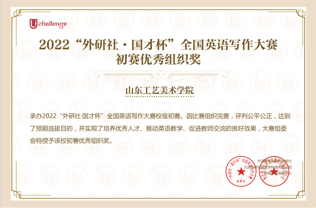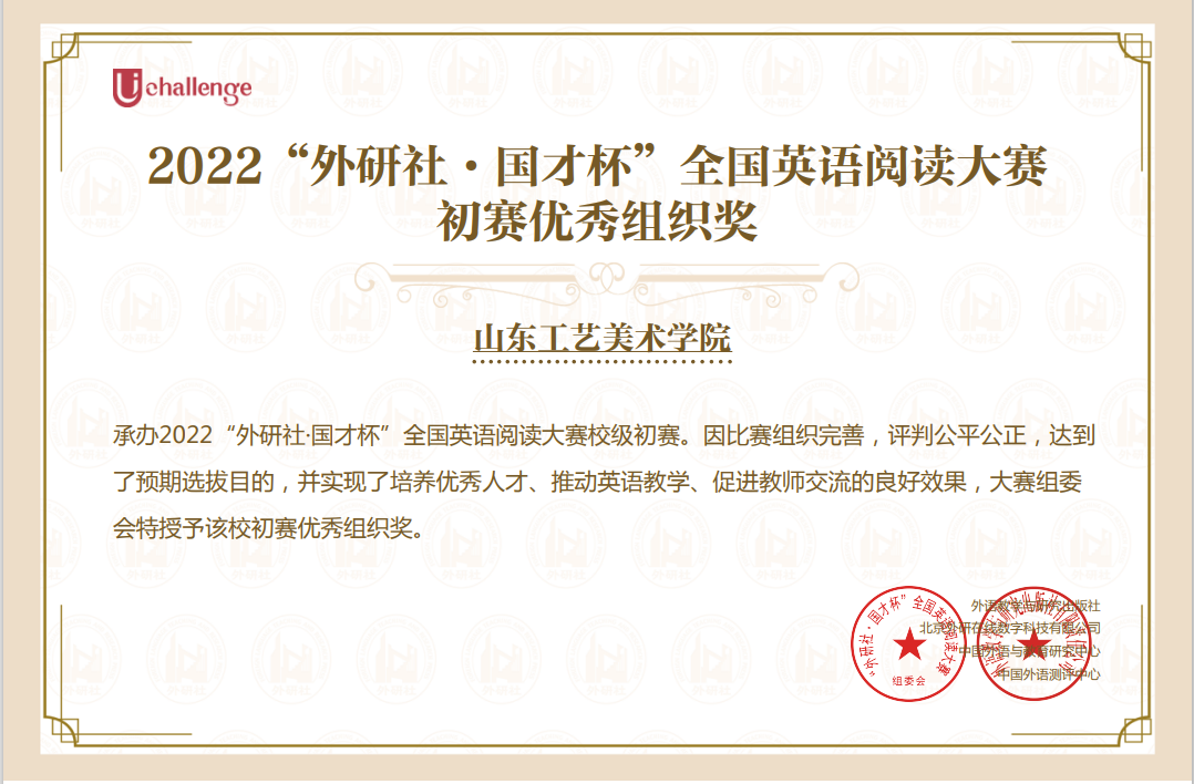 初赛阶段,经过层层选拔,最终1名同学获写作特等奖,15位同学分别获一二三等奖;两名同学获阅读特等奖,47位同学分别获一二三等奖;1名同学获演讲特等奖,27位同学分别获一二三等奖,后期将有5名同学代表学校参加山东省复赛。因比赛组织完善,收到良好效果,永利官网获2022“外研社·国才杯”大赛初赛优秀组织奖。