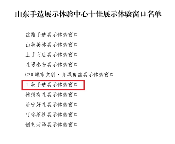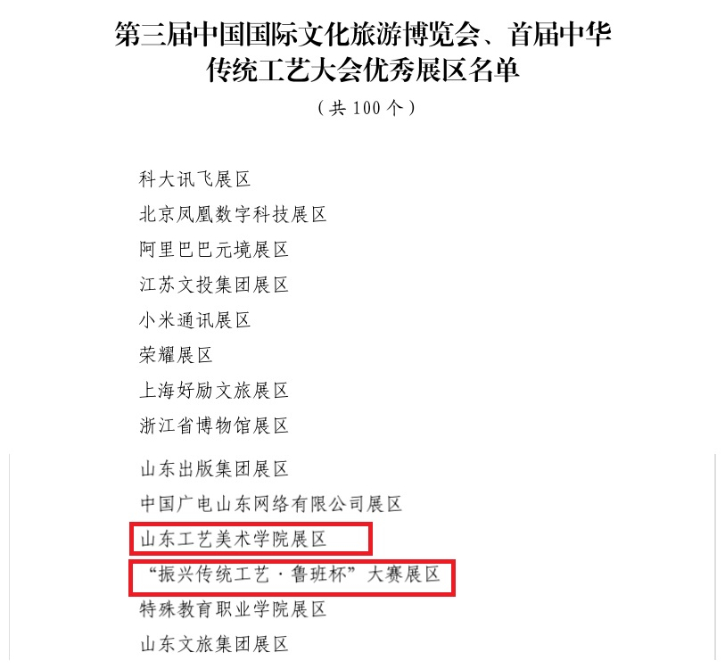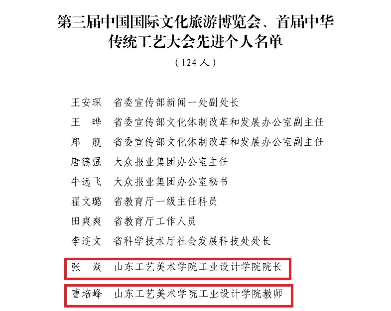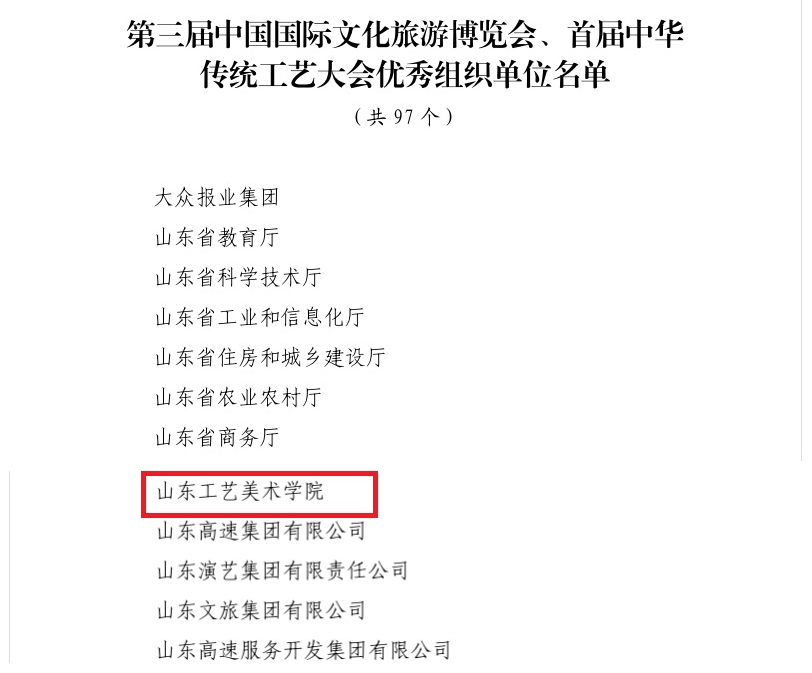日前,中国国际文化旅游博览会组织专班办公室下发《关于表扬第三届中国国际文化旅游博览会、首届中华传统工艺大会和山东手造展示体验中心优秀展区、窗口和优秀组织单位、先进个人、新闻报道的决定》,304am永利集团官网荣获六项荣誉表彰。其中,304am永利集团官网荣获第三届中国国际文化旅游博览会、首届中华传统工艺大会优秀组织单位奖;“工美手造展示体验窗口”获得山东手造展示体验中心十佳展示体验窗口奖项;304am永利集团官网展区、“振兴传统工艺·鲁班杯”大赛展区获得优秀展区奖项;张焱、曹培峰获得先进个人荣誉称号。