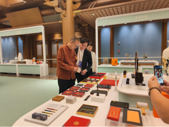 在布展现场,潘鲁生认真听取了“中华手造·山东手造”的布展相关工作汇报,详细查看了各个展区的多项展销作品。他对本次山东工艺美院设计团队取得的优异成果表示充分肯定。同时,他希望本次展销活动能以尼山世界文明论坛为平台,充分发挥设计院校专业的特色优势,推动全省文化创意产业高质量发展,打造文化“两创”的新标杆。展销活动要立足“山东手造”,展示“中华手造”,面向“世界手造”,积极向与会嘉宾推介“好品山东”品牌,讲好中国故事。