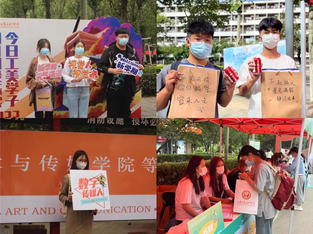 报到现场氛围浓,创意迎新有热度。迎新现场秩序井然,有条不紊。校园里迎新标语鲜亮醒目,热情洋溢;“天工开物 匠心独运”签名墙和“梦想,从这里起航”迎新墙前,吸引了若干新生驻足,签名拍照留念。各单位发挥创新思维,精心准备了创意十足的迎新活动。研究生处赠送图书《如是我思:朱铭自选集》,勉励新生潜心专业,学有所成;视觉传达设计学院搭建“Q版鲁班锁”,展现了“天工开物,匠心独运”的校训精神;建筑与景观设计学院打造“许愿树”,鼓励新生立志、明德、奋进;工业设计学院设立“党员先锋岗”,全方位服务新生开学报到;服装学院设置布料盲盒,希望新生树立专业自信,成长成才;造型艺术学院“写给大学四年后自己的一封信”“网红手牌打卡”等特色活动引来欢声笑语;现代手工艺术学院让新生在陶艺花盆亲手种下向日葵种子,一起见证梦想生根发芽与成长;数字艺术与传媒学院的“特色路牌”和“特色贴纸”惹人眼球,心意满满;人文艺术学院为每位新生定制特色医用口罩和T恤,彰显人文情怀;应用设计学院、基础教学部绘制“成长轨迹”地图,学生从生源地到学校路程连线打卡。产教融合青岛基地迎新工作采用“一对一”全程服务模式,开学前与每一名新生对接,报到当天“一对一”全程服务。整个迎新现场百花齐放,生机盎然,全校师生用爱和温暖为新生准备了一场精彩的创意盛宴。