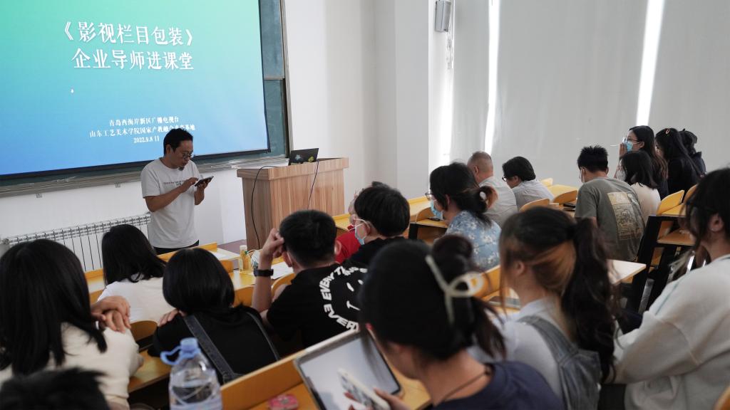 9月8日上午,西海岸新区广播电视台行业专家来到国家产教融合青岛基地,进入课堂指导学生进行《影视栏目包装》课程的实践创作。