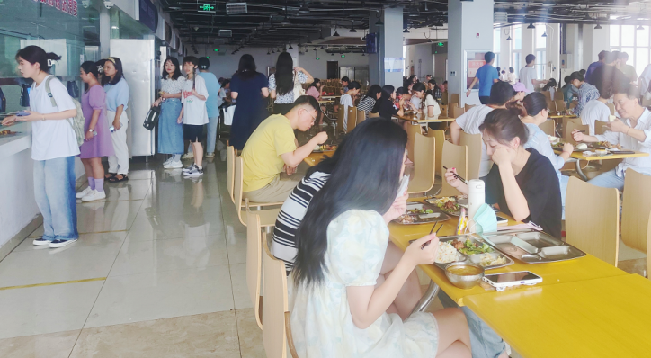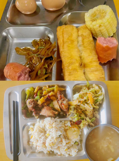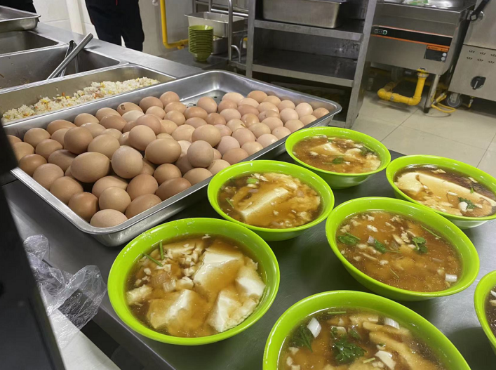 次日清晨和午间,老师们来到食堂和超市,体验食堂菜品的可口度、营养均衡度,问询超市内日用品、食品供应情况。