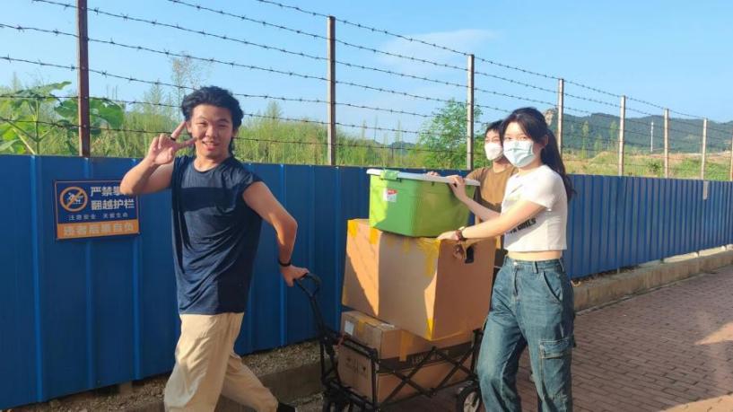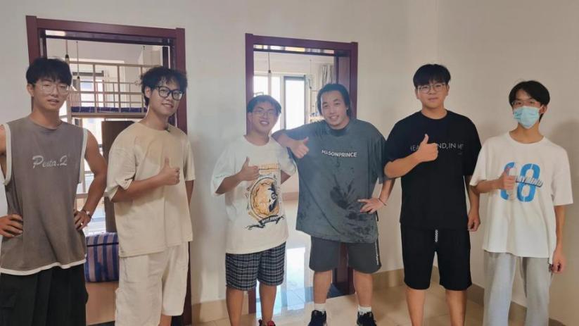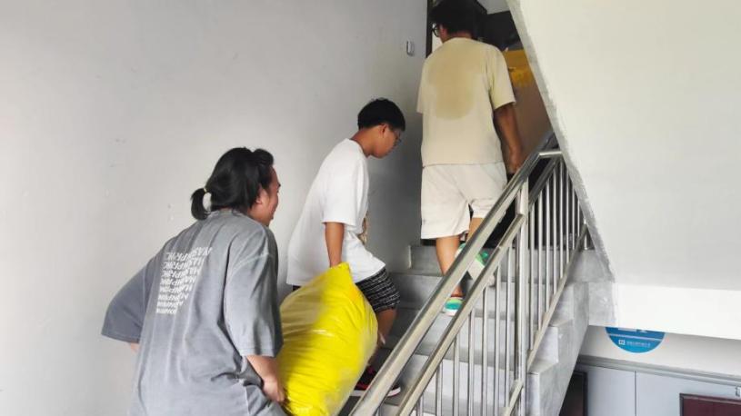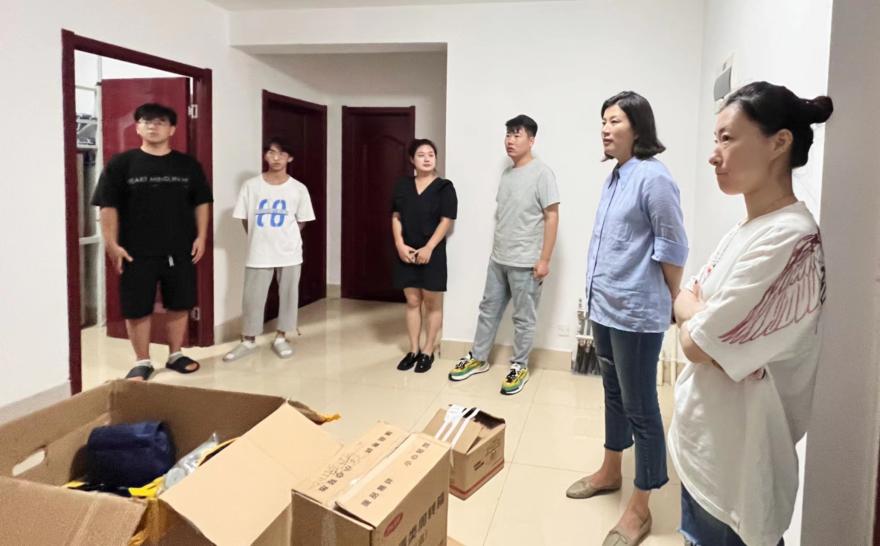 青岛基地教师和学生志愿者在学生公寓楼前热情迎接了第一批来基地师生,并协助他们搬运行李。在学生公寓内,有专门的教师一直随行陪同,随时解答和解决学生们遇到的临时状况和问题,学生们对青岛基地的住宿条件感到十分满意。