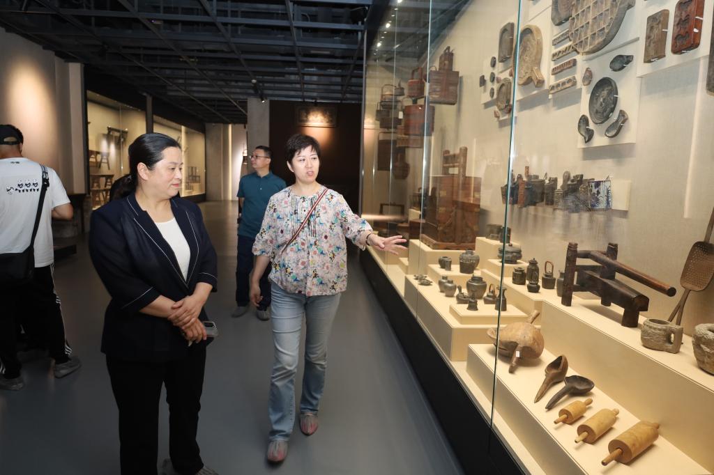 座谈会后,庞艳玲一行参观了学校美术馆“山东手造 青春力量”展览以及正在布展中的民艺馆。