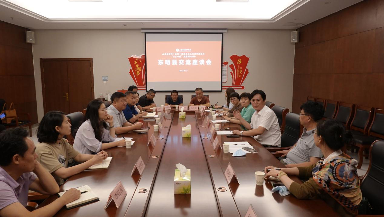 7月12日,调研团队赴东明县,先后对菜园集镇庄子观、高村黄河水利风景区、东明黄河湿地公园与东明文化中心进行了黄河现状与民俗文化的调研。东明县委宣传部部长程洪涛、文化和旅游局局长张乐场等有关领导对黄河现状、东明县历经的红色文化事件进行了介绍。随后,调研组在东明文化中心的民俗馆、非遗展厅等系统地调研了东明县的黄河民俗文化,在座谈会中与县委领导们探讨了东明生态文化廊道的建设与规划。