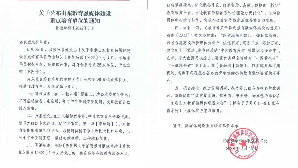 今年5月,山东教育融媒体联盟秘书处公布山东教育融媒体建设重点培育单位名单,304am永利集团官网为25家融媒体建设重点培育单位之一。