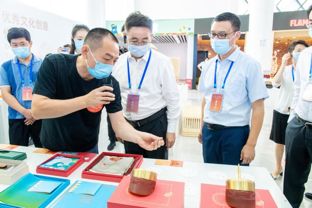展览现场,白玉刚察看了学校团队创作的漆器艺术作品《合礼之器—大漆饮食具》,指示文创作品要秉承设计服务于生活的创作理念,筑牢民族文化核心价值观体系、构建现代文化产业体系、满足民众美好生活需要、维护文化多样性等方面推动传统文化资源转化与创新。