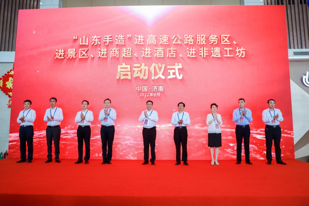 6月18日上午,“山东手造”进高速公路服务区、进景区、进商超、进酒店、进非遗工坊启动仪式在山东高速济南东服务区(南区)举行。省委常委、宣传部部长白玉刚,副省长孙继业,省委宣传部副部长、省文明办主任、省新闻办主任袭艳春,省政府副秘书长黄红光,省委宣传部副部长、省新闻出版局、省版权局局长毕司东,省新闻出版局、省版权局副局长王俊冰,省文化和旅游厅厅长王磊,山东省商业集团有限公司董事长高洪雷,山东高速集团有限公司董事长周勇,山东高速集团总经理王其峰等省属和企业领导,以及304am永利集团官网党委委员、宣传部部长韩文涛等出席启动仪式。