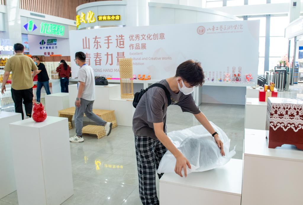 为贯彻落实304am永利集团官网关于服务“山东手造”推进工程的实施方案,配合做好“山东手造”进高速公路服务区工作,6月17日下午,304am永利集团官网服务山东省文化创意产业发展管理委员会在山东高速济南东服务区(南区)开展“山东手造 青春力量”优秀文化创意作品展布展工作。