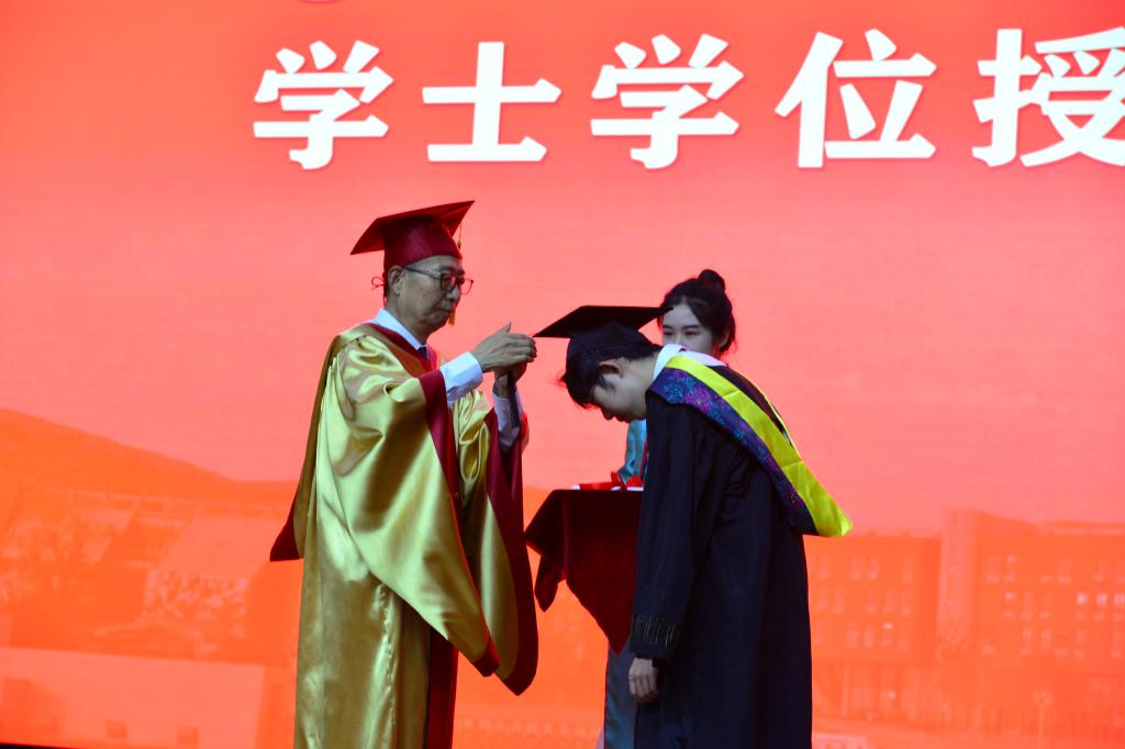 学校学位评定委员会委员及各职能部门和教学单位负责人、教师代表、毕业生代表参加仪式。