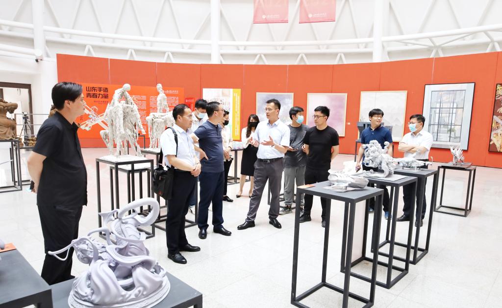工业设计学院、造型艺术学院、社会服务办公室、美术馆、服务山东省文化创意产业发展管理委员会办公室等相关负责同志陪同参观。