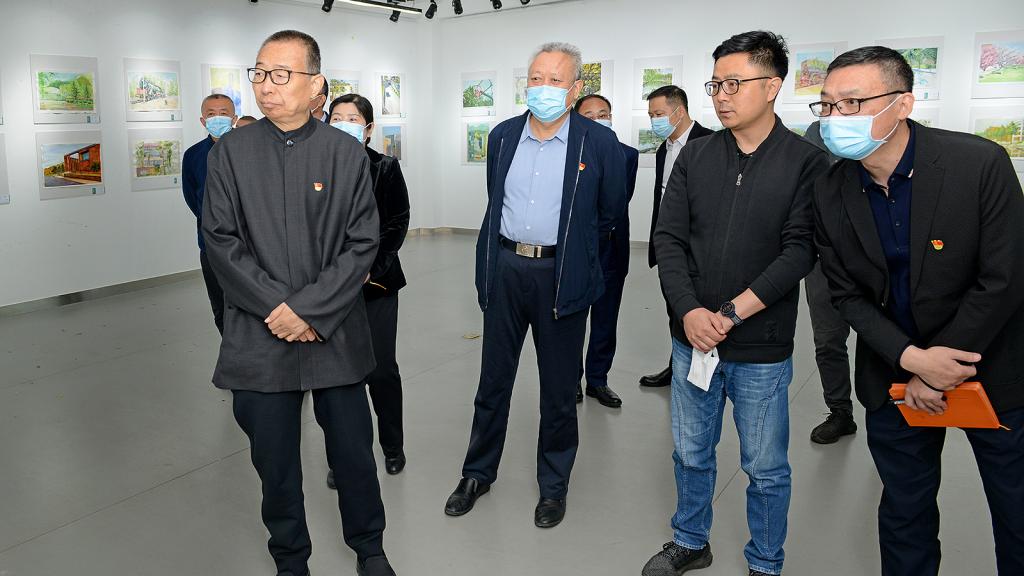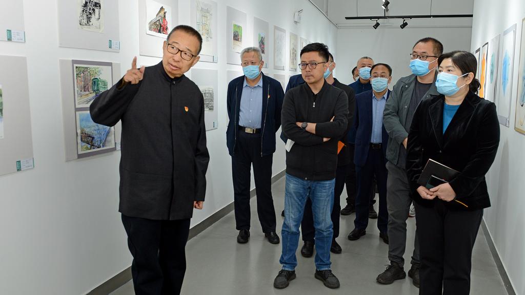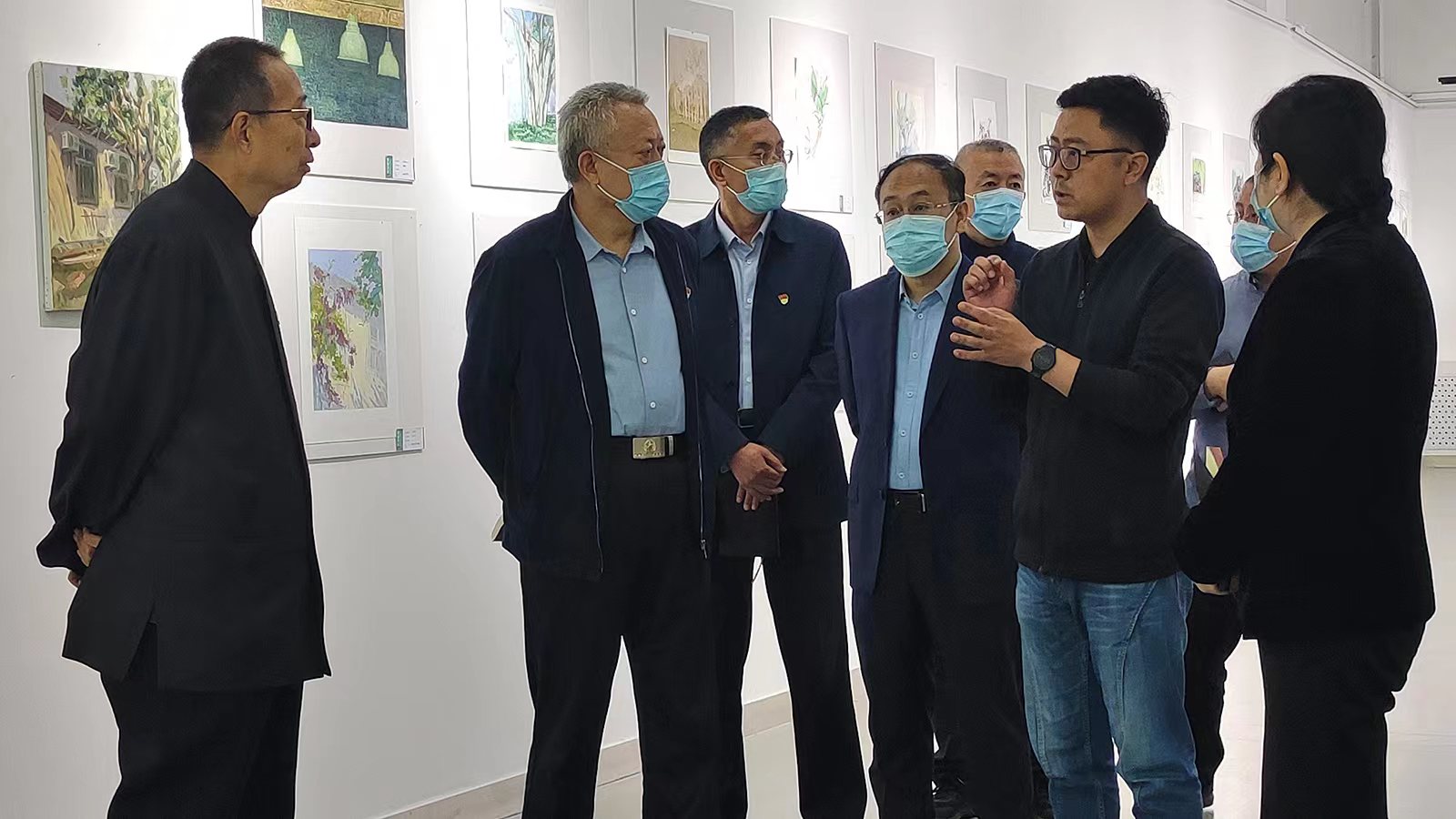 5月13日上午,院长潘鲁生,副院长张艳霞,纪委书记苗新民,副院长董占军、韩世春,党委委员、宣传部部长韩文涛参观指导“疫”路同行——2022304am永利集团官网主题写生创作展暨第五届基础课教学成果展。