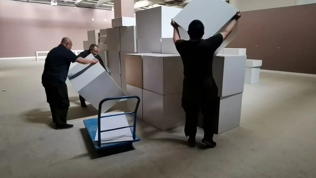 为积极迎接5月全校毕业展览季的到来,美术馆教职工在校内安保人员通力协助下,安全撤离《大美赞颂百年辉煌——庆祝建党百年华诞艺术与设计主题创作展》约200件展品、近百件展柜。认真负责地对待每一件展品,针对多幅超大尺寸作品,合理平稳处理、妥善包裹保护,圆满顺利完成撤展工作,保障了美术馆在疫情期间的正常运行,为即将开展的展览争取到了更多的准备时间。