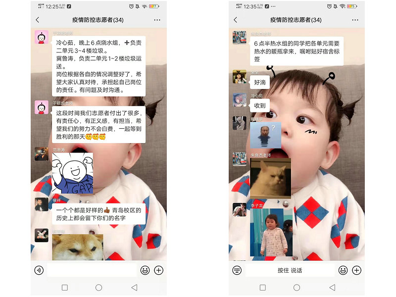 “我申请报名!”“我要参加!”志愿者招募的通知发出后,同学们纷纷挺身而出,积极报名志愿者,志愿者微信群瞬间满员,特殊时期,他们展现出超高的主动性与责任感,为学校战“疫”注入了一股青春暖流。