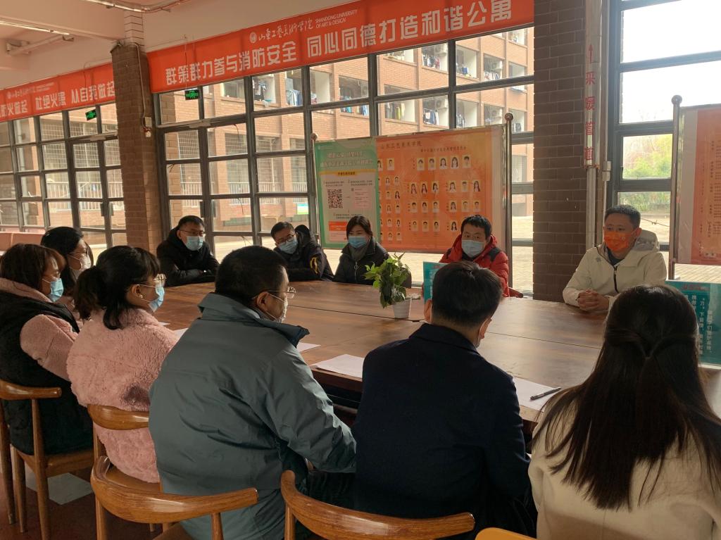 党旗猎猎,主心骨在师生心里。哪里急迫、哪里有师生,哪里就有党的战斗堡垒,就有党组织坚强有力的领导和扎实有效的工作。校、院两级应急指挥部及其职能组、千佛山校区疫情防控专班,不分昼夜连轴转,调度工作、实地督导、解决问题,有力、有序、高效指挥校园防控,始终坚守在防控第一线,始终与全校师生站在一起,让全体师生更安心、更踏实。创新创业学院、青岛基地、基础教学部领导班子成员和教职工认真值守履职,与驻地、园区联动对接,精心储备物资,用心搞好保障,严格落实防控举措,共同下好“一校四地”校园防疫这盘大棋。数字艺术与传媒学院党总支班子成员带领辅导员老师深入学生宿舍,现场观摩督导学生线上上课情况,了解学生对线上课程的反响和意见建议,督促学生不缺勤旷课、不迟到早退、不刷课应付,高质量完成线上学习,确保防疫和学习“两不误”。建筑与景观设计学院党总支班子成员召开师生“露天”座谈会,面对面指导学生的学习、生活和思想,了解毕业生就业、考研复试需求,鼓励学生以个人专业之精进实现自我奋斗之价值。