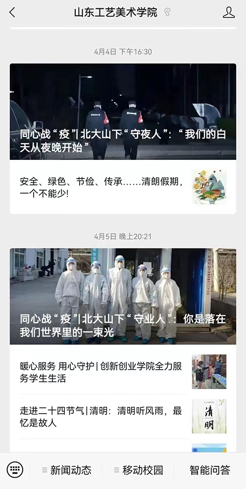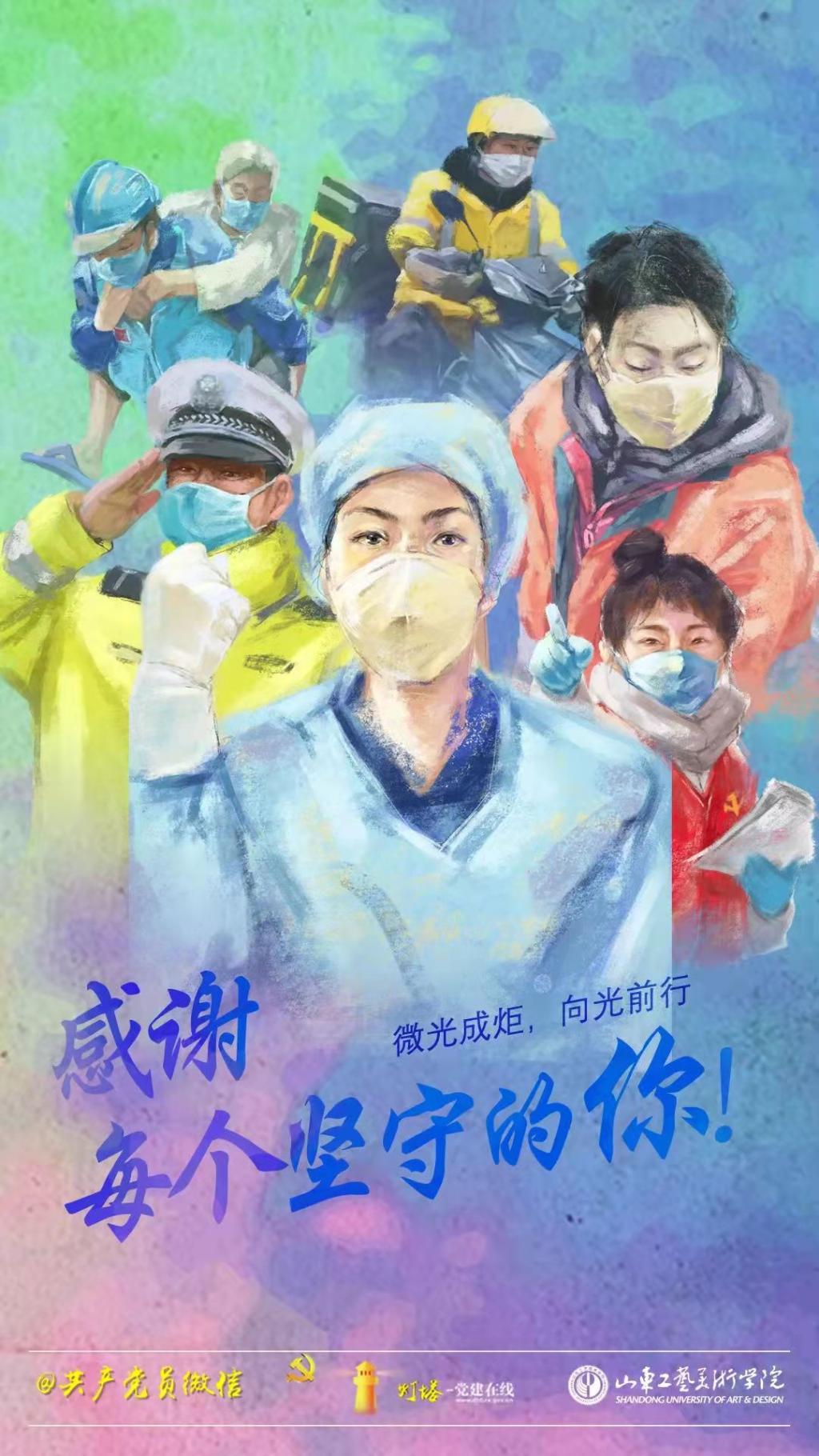 守夜、守业、守护、守梦。有这样一批党组织和专班队伍,他们带领党员、干部、教工始终奋战在校园防疫最繁重、最艰苦、最急需的岗位,昼夜鏖战、争分夺秒,勇挑重担、攻坚克难。封校17天408小时不间断校园巡逻,40余天10余万次无失误核酸检测,200余名后勤物业人员克服困难坚守岗位,数以万计的食品物资采购搬运,制作精良的可口饭菜,有力的水电、网络、维修保障,学工队伍对学生的温暖陪伴,图书馆老师为学生点亮的每一盏明灯,实践教学中心为学生开放的每一间实验室、操作间,青岛基地宿舍封控24天里的12000份餐点配送……视觉传达设计学院教师党支部的专业教师带头发动,引导学生强化“为人民设计”使命担当,指导学生创作的《微光可成星海》系列海报在中央组织部“共产党员”官微发布,创作的《新版神医扁鹊“忘温问切”四诊法》海报用轻松活泼的艺术语言宣传防疫知识,应用设计学院党总支引导师生拍摄《在行动》《你安好,我无恙》等多部视频短片,在灯塔党建在线、山东省教育厅官微发布,“以艺抗疫”为全社会疫情防控注入精神力量。