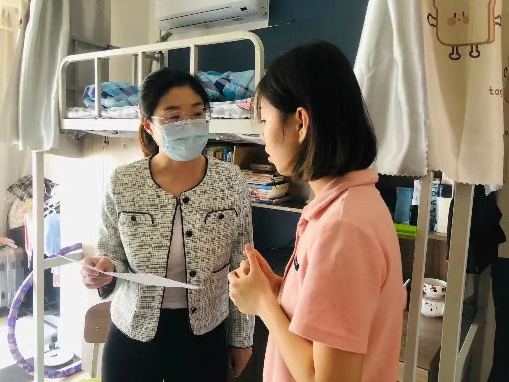当我想你的时候,隔着屏幕亲亲你的脸。褪去坚强的“外衣”,每一名驻守校园的教职工都是普通人,他们都是爸爸妈妈、儿子女儿、妻子丈夫,也有亲情牵挂。在全天候守护在学生身边的辅导员中,有6名女辅导员的孩子尚幼,有3名辅导员家中有两个孩子,每天忙完工作,他们挤出时间和孩子视频,隔着屏幕亲一亲心肝宝贝,安抚一下哭闹的孩子。辅导员褚丁庆、王晓琼家住学校附近,家人们把年幼的孩子带到校园栅栏旁,只能隔着栅栏远远地看看孩子可爱的小脸,听听孩子的声音。辅导员徐帅、李灿家中的孩子年龄较小,她们有点心酸地笑着说,“孩子最近不怎么理妈妈,隔着屏幕扭着头喊妈妈,也不看看妈妈”。儿子9岁生日的当天,辅导员康映雪返校封闭,而此时她的爱人正奋战在入境包机“国门”检测的第一线。广大辅导员、学工干部队伍用责任奉献,深刻诠释了学生引路人、守护人的真正含义。