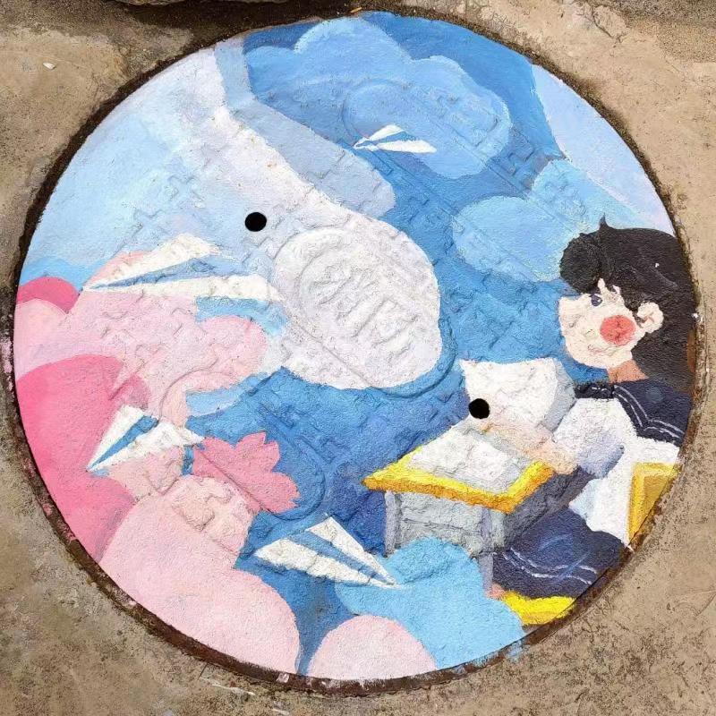 美丽的图案跃动于井盖之上