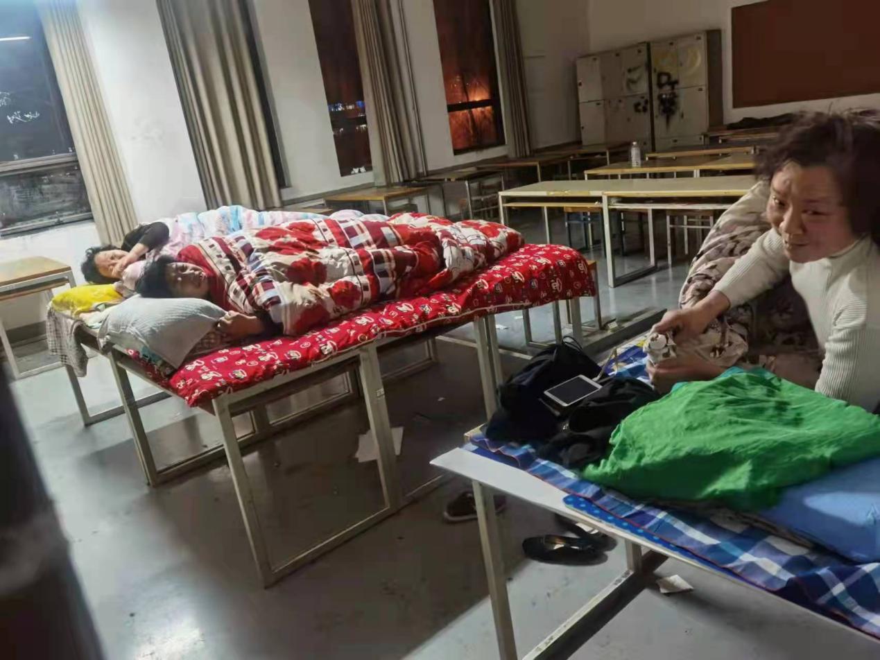 垫子一铺就是床,在哪休息都一样,他们是这样想的,也是这样做的。夜晚休息时,闲置教室的课桌、运送货车的座椅、体育馆的地面……成为他们临时夜宿的地方。