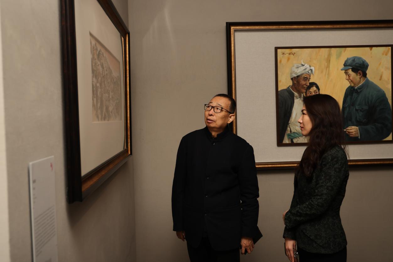 在位于云堡未来市艺术文创园区的上海艺术百代美术馆,潘鲁生观看了正在展出的“奋斗——新中国岁月回响”红色艺术主题展。潘鲁生对于民营美术馆能够积极致力于弘扬红色文化,打造“可阅读、可体验、可回味”的红色艺术课堂表示赞赏。