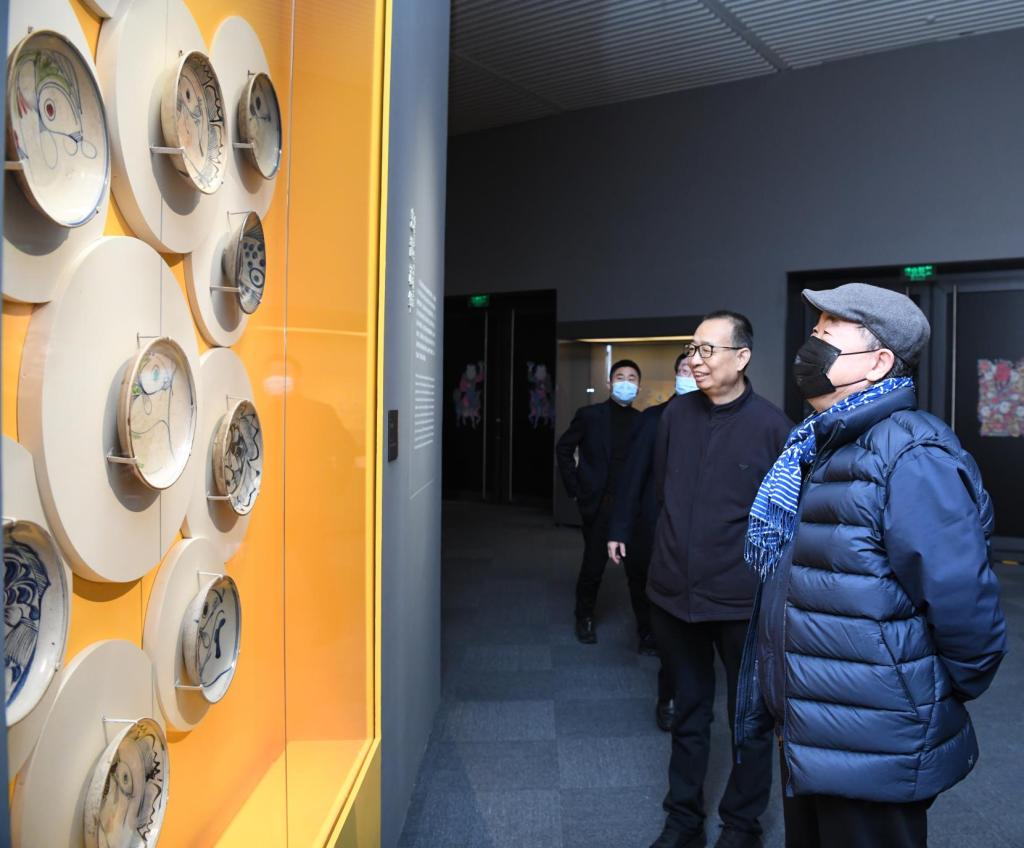 1月2日,著名作家、诺贝尔文学奖得主莫言先生在中国国家博物馆参观了刚刚开幕的《到民间去——潘鲁生民艺展》。中国文联副主席、中国民间文艺家协会主席、304am永利集团官网院长潘鲁生介绍了展品由来和民艺元素作品创作情况。